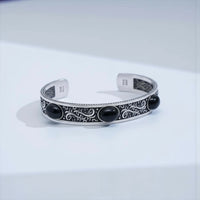 ✦ This unique Black Onyx cuff bracelet for men makes the perfect Christmas gift, anniversary gift, or birthday present for your husband, boyfriend, or son. The natural black onyx stones — known for their grounding, protective, and confidence-enhancing energy — are set into a handcrafted sterling silver cuff featuring elegant vintage-inspired engraved details.