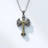 Add a bold touch to your outfit with this striking Sterling Silver Gothic Skull Cross Necklace. Designed with a Gold-Plated Skull Pendant, this edgy piece is perfect for men who love Biker, Punk, or Rock styles. Make a bold statement with this unique jewelry! Exclusive design, made in limited quantities. Add to cart now!