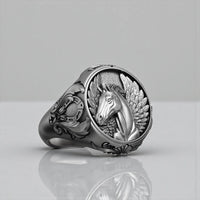 Unleash your inner myth with our Pegasus Horse Sterling Silver Ring for Men! This stunning statement ring features a beautifully crafted winged horse design, embodying strength and freedom. Perfect for mythology enthusiasts and unique jewelry collectors alike, this ring adds a touch of the fantastical to any outfit. Made from high-quality sterling silver, it’s durable and striking. Embrace the legend of the Pegasus and wear this exquisite piece of winged horse jewelry with pride!